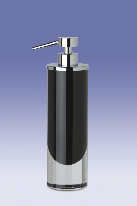 Black or white crystal soap dispenser, offered with a pump made of solid brass and finished in chrome.