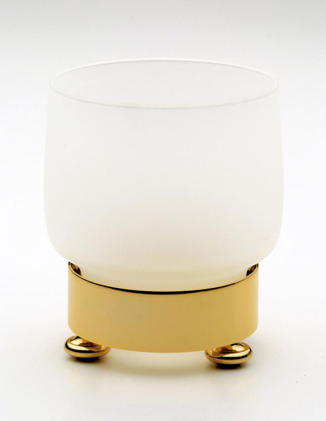 Frosted crystal tumbler on a solid brass base finished in 24 karat gold plate. Other finishes include, chrome (94102-MCR) or chrome and 24 karat gold plate combination (94102-MCRO).
