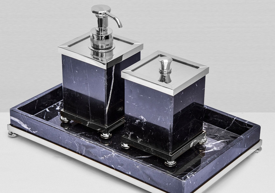 Dazzling jars made with luxurious black marble and featuring an exquisite, timeless design. Available in Chrome and Gold as well as bespoke finishes.