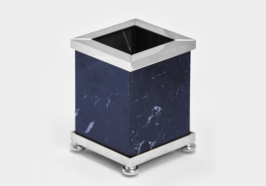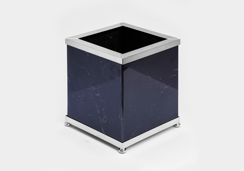 Spectacularly breathtaking bin made with luxurious black marble and featuring an exquisite, timeless design. Available in Chrome and Gold as well as bespoke finishes.