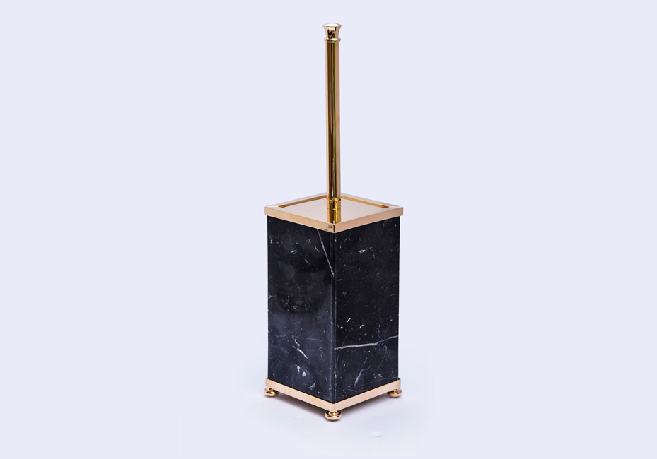 Exquisitely crafted toilet brush made with luxurious black marble and featuring an exquisite, timeless design. Available in Chrome and Gold as well as bespoke finishes.