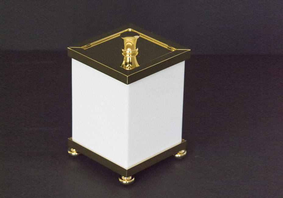 Spectacularly breathtaking bin made with luxurious white marble and featuring an exquisite, timeless design. Available in Chrome and Gold as well as bespoke finishes.