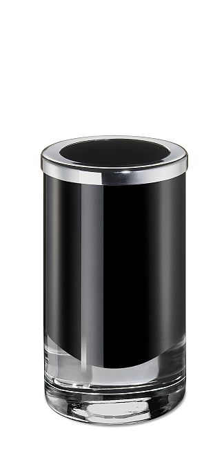 Miniature brush holder is made of black crystal with a solid brass ring around the rim which can be plated in either chrome (91064-NCR) or 24-kt gold (91064-NO)