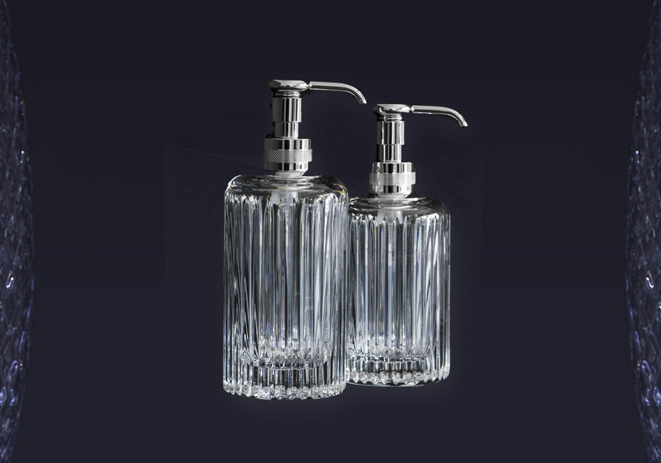A striking, beautifully crafted luxurious soap dispenser available in variety of finishes. Pictured here in Chrome design.