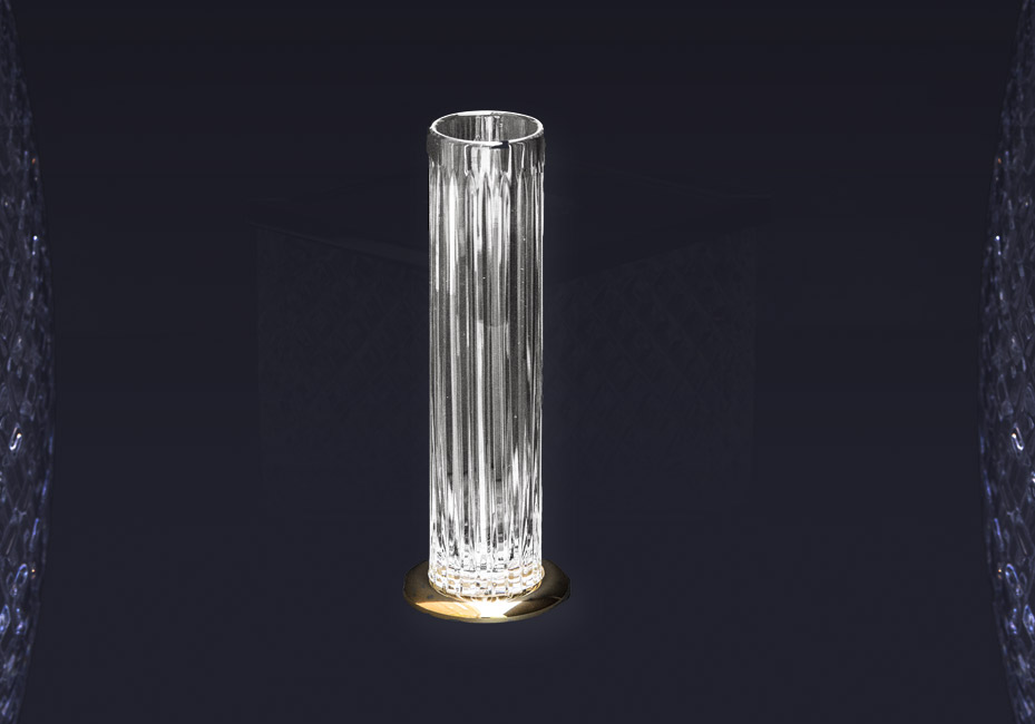 A magnificent vase with a contemporary look yet possessing a timeless finish. The sleek metal accents come in a variety of finishes – from a lustrous 24-karat gold-plated veneer to the genteel sophistication of brass, chrome, black and polished nickel, as well as bespoke finishes available on special order.