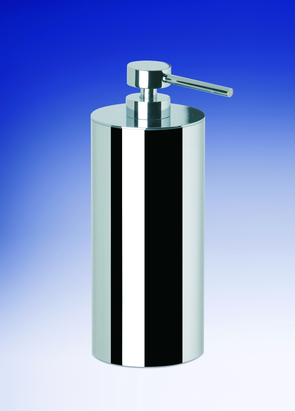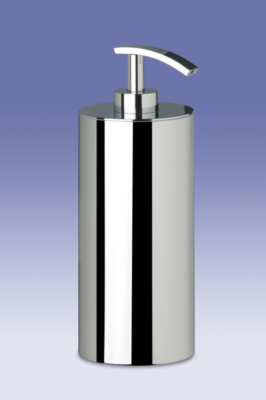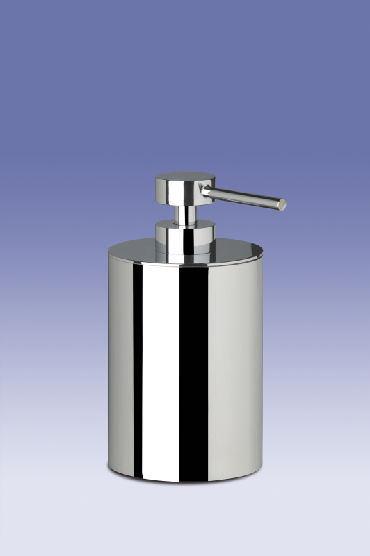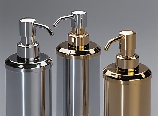Solid brass cylinder soap dispenser available to purchase in an elegant chrome (90203-CR), satin nickel (90203-SNI) or 24k gold plated finish (90203-O).