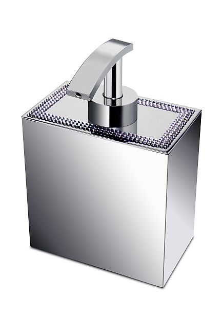 Stylish soap dispenser made of solid brass and beautifully presented with a pump decorated in Swarovski crystals, placed by hand by experienced Swarovski designers. Available Finishes: chrome and 24k gold plated.