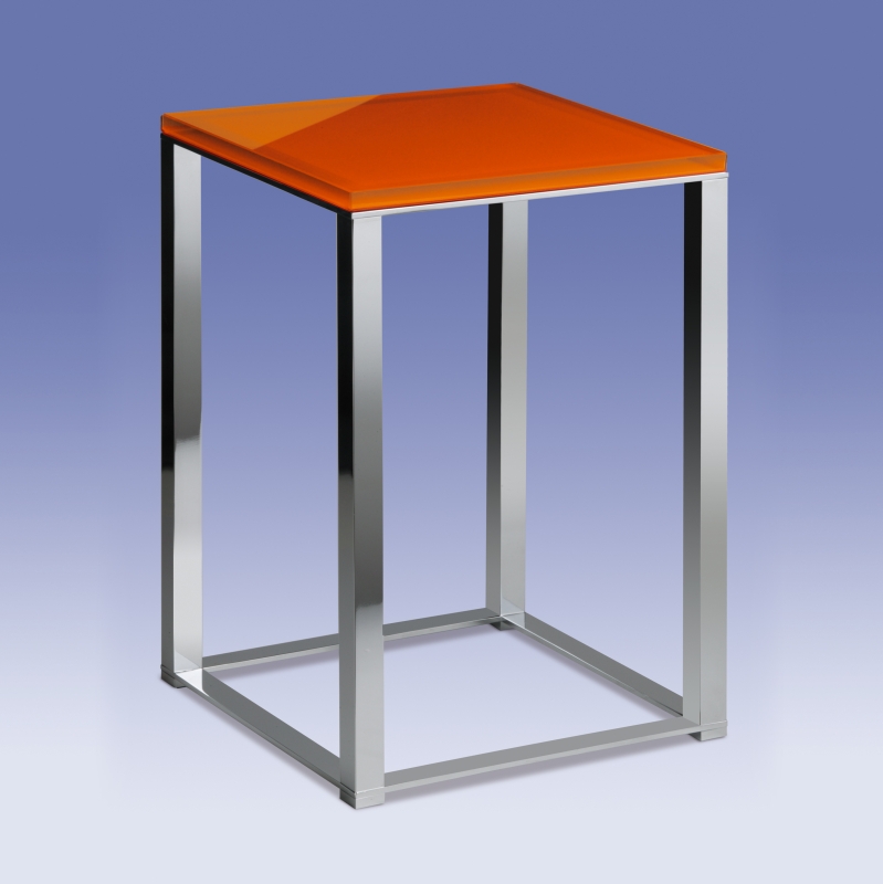 Solid brass stool with a chrome finish is available for purchase with a square black glass seat.