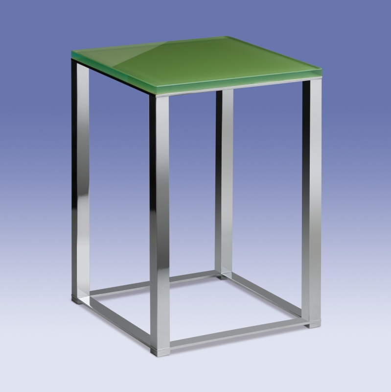 Solid brass stool with a chrome finish is available for purchase with a square green glass seat.