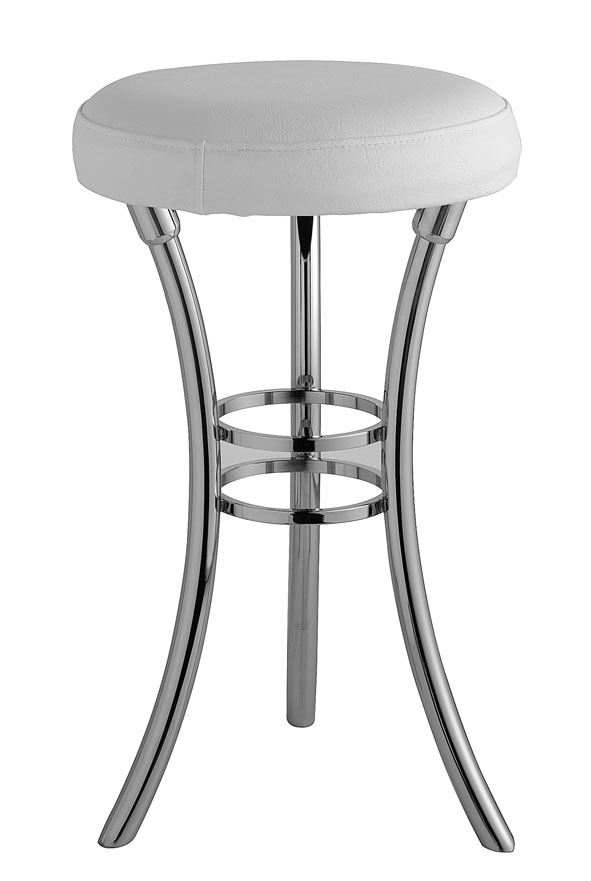 Solid brass stool finished in chrome is available with a stylish natural leather seat.