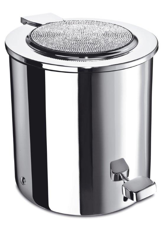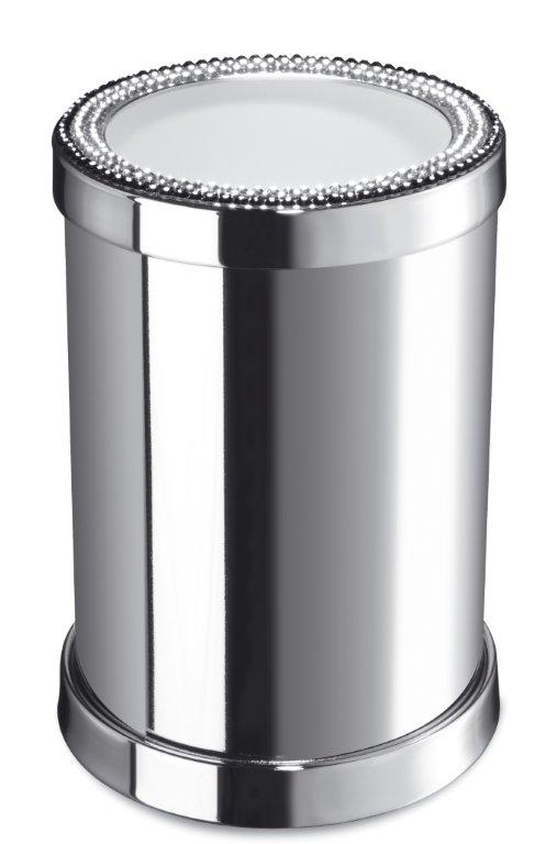 Stunning round bath bin made of solid brass, is presented with a top face elegantly detailed with hand placed Swarovski crystals. Available finishes: chrome and 24 karat gold plate.