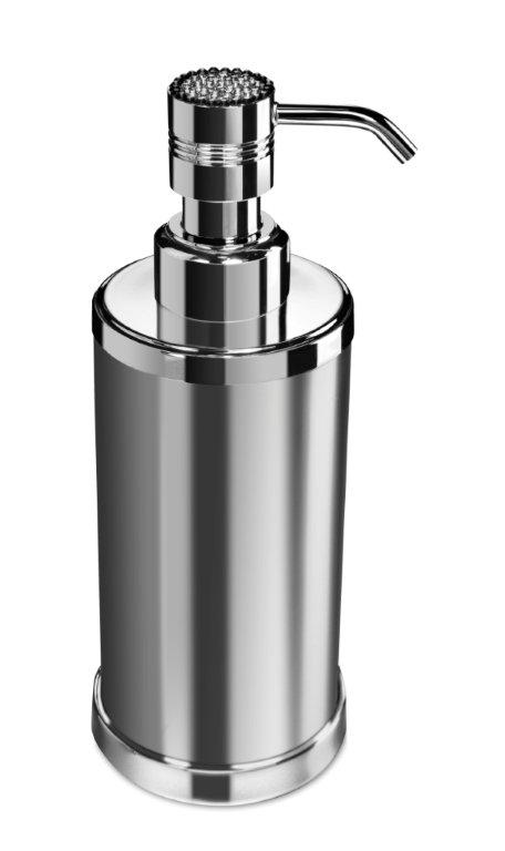 Stylish soap dispenser made of solid brass and beautifully presented with a pump decorated in Swarovski crystals, placed by hand by experienced Swarovski designers. Available finishes: chrome and 24 karat gold plate.