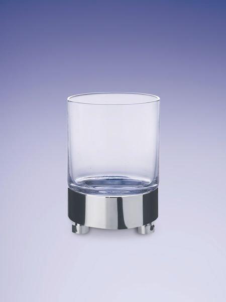 A Smooth clear crystal tumbler placed on a solid brass base, available finished in chrome, satin nickel or rustic brushed brass.