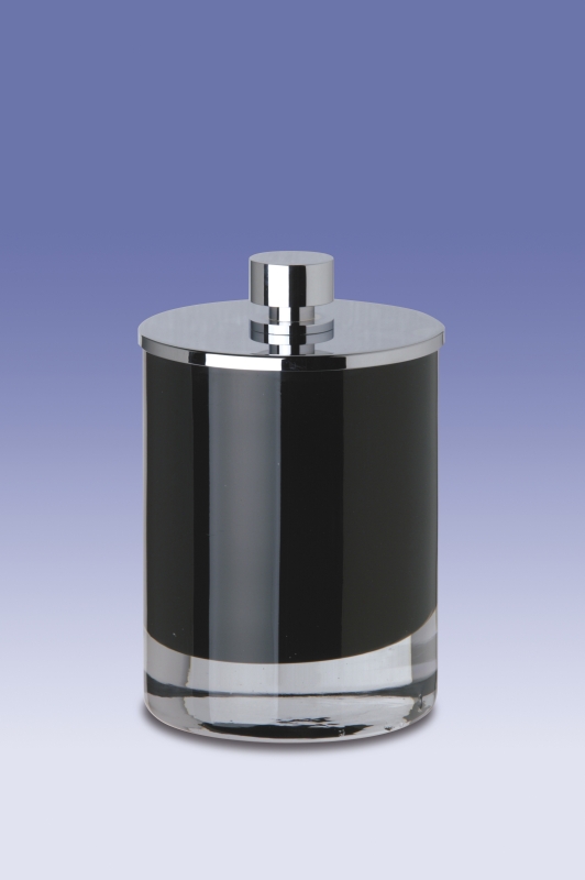Cotton wool jar with a solid brass lid finished in chrome is available in white or black crystal.
