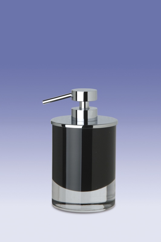 Black or white crystal soap dispenser, offered with a pump made of solid brass and finished in chrome.